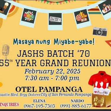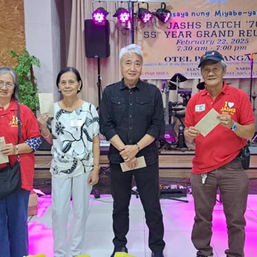 Graduates of JASHS Batch ’70 meet annually to stay connected, enjoy camaraderie, share meals and drinks, dance, and engage in Maritess-an. Supported by alumni donations, our informal association thrives without formal by-laws, overcoming challenges with dedication and love, ensuring our joyful tradition continues.